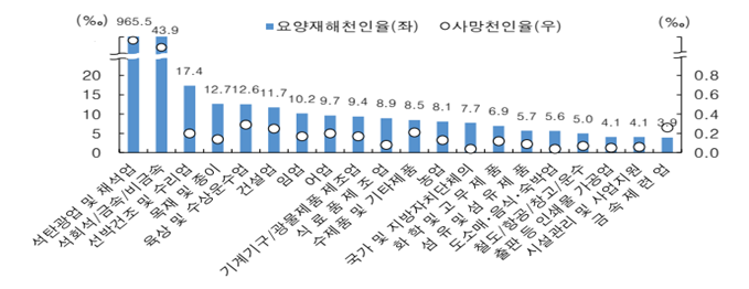 <업종별 재해율 및 사망률 (2020년 기준)>